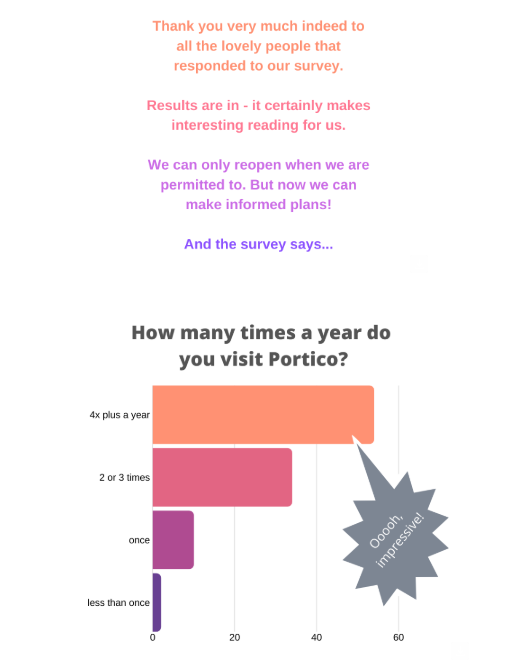 Here’s a great example from our lovely friends at The Portico of Ards of using survey results to feed back to your audiences (thanks for sharing!).
